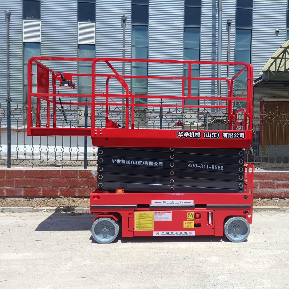 The steering of the Huaju scissor self-propelled aerial work platform is a two-way cylinder steering force that does not stuck when walking at high altitude and steering, and can walk fast and slow in different working states, and only one person can operate the machine to continuously complete lifting, forward, backward, steering and other actions during high-altitude work, which greatly improves work efficiency and reduces the number of operators and labor intensity compared with the traditional hydraulic platform. It is especially suitable for plant maintenance, industrial installation, equipment overhaul, municipal engineering, property management, warehouses, ports, stations, aviation airports, gas stations, gymnasiums and other large-scale high-altitude continuous operations.