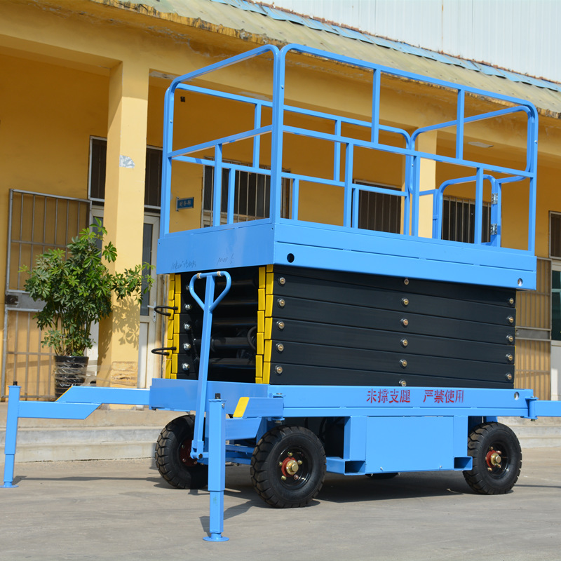 Before using a conventional scissor lift platform, the support legs must be extended. If you need to move it, the platform must be lowered and the support legs retracted before moving. The product features a high load capacity and low price, making it suitable for users with heavy load requirements or locations where the platform does not need to be moved after being raised.